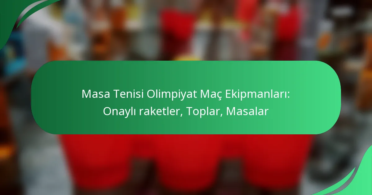 Olimpiyat masa tenisi maçlarında, ekipmanların Uluslararası Masa Tenisi Federasyonu (ITTF) tarafından belirlenen katı standartlara uyması gerekmektedir. Bu, adil oyun ve tutarlı performans için tasarlanmış onaylı raketleri ve 40 mm çapında ve 2.7 gram ağırlığında olan topları içerir; bu da rekabet sırasında kaliteyi garanti eder. Ayrıca, bu maçlarda kullanılan masalar ITTF spesifikasyonlarına uygun olarak tasarlanmıştır ve sporda adalet ve eşitliği daha da teşvik etmektedir.
